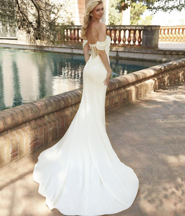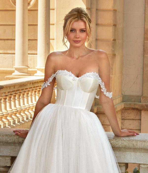 The GRACE Collection epitomizes elegance and timeless style, designed for brides who wish to exude sophisticated grace on the most important day of their lives. The dresses in this collection are crafted from luxurious mikado fabric, distinguished by its exceptional texture and subtle sheen. Each design combines classic silhouettes with modern accents, creating unique gowns that captivate with their individuality.