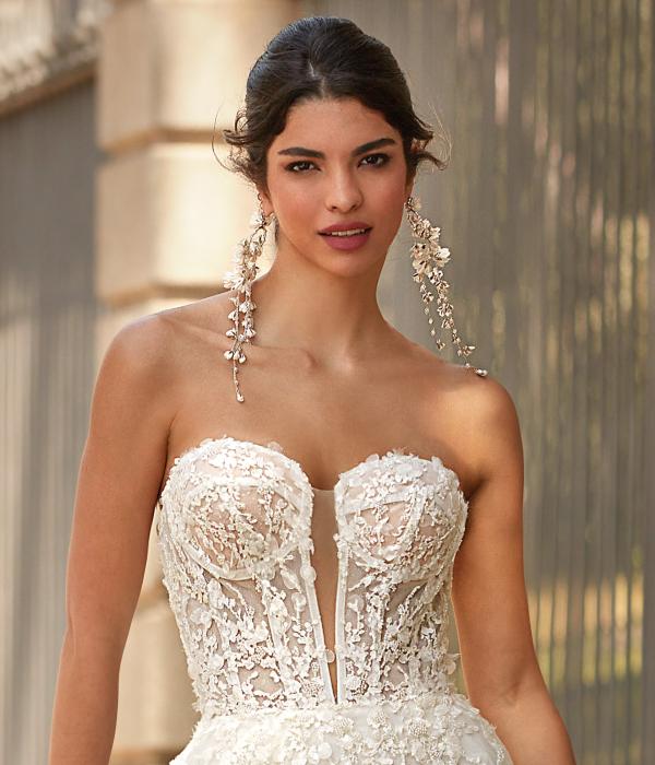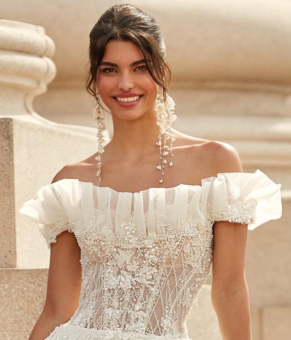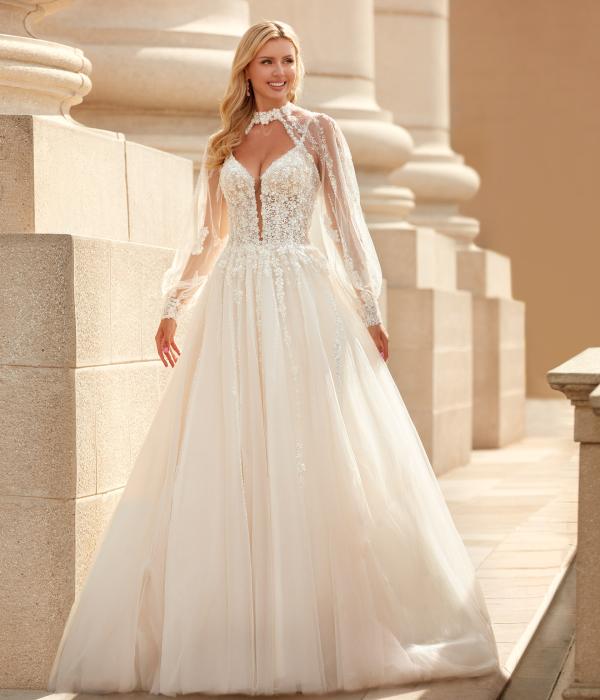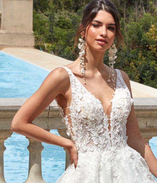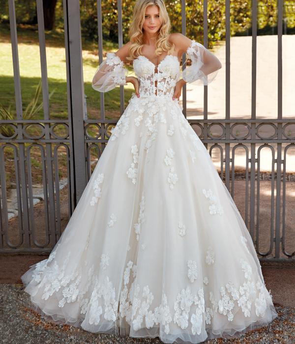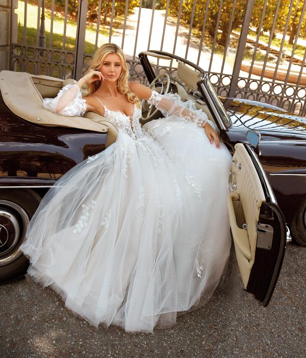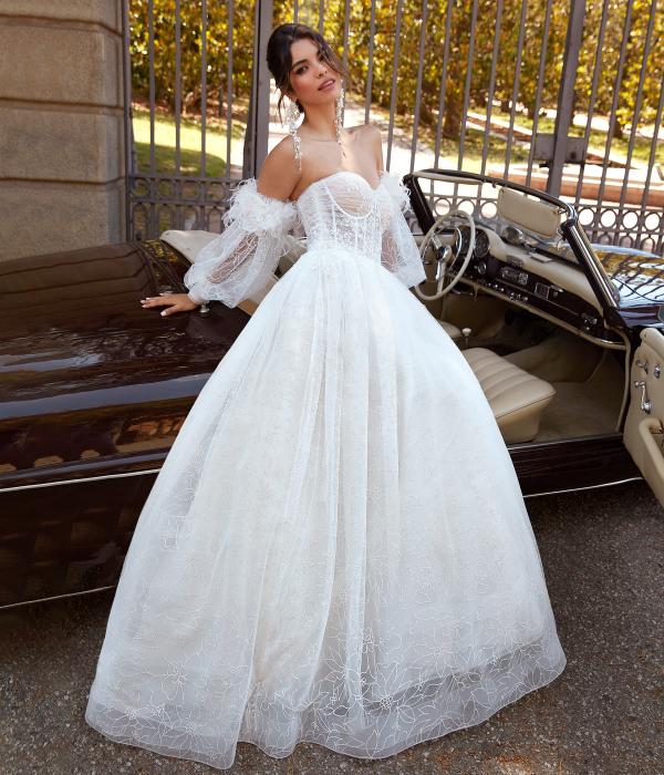 The Princess collection embodies romance and elegance, designed for brides dreaming of a fairytale wedding. This collection features gowns with delicate lace, 3D elements, and luxurious fabrics. Each dress, from deep-neckline bodices to flowing skirts with cathedral trains, blends classic style with modern grace. Princess is the choice for those who wish to feel like royalty on their special day.